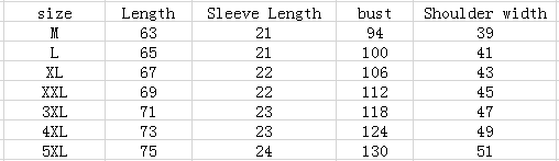 Size: M, L, XL, 2XL, 3XL, 4XL, 5XL